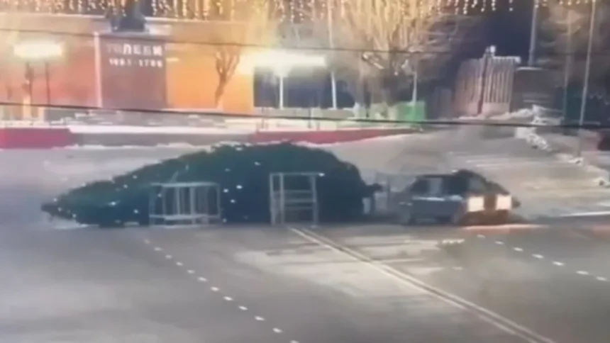 Driftelő Lada karácsonyfa baleset 2025: Főtéren döntött fát