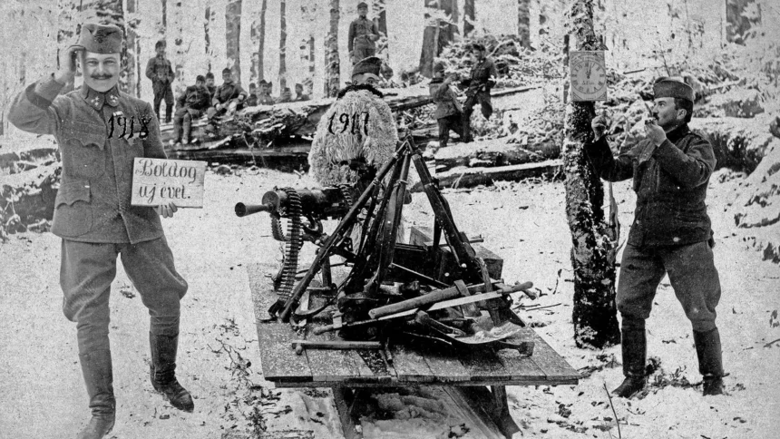 Az év utolsó napját, a Szilvesztert mindig különleges várakozás és ünneplés övezte a magyar társadalomban. Amikor az 1914-es háborús szilveszterre tekintünk, a Magyar Nemzeti Múzeum Történeti Fényképtárában őrzött felvételeken láthatjuk, ahogy a frontkatonák rögtönzött ünnepsége még a lövészárkokban is megteremtette a hagyomány folytonosságát. A katonák alkalmi díszleteket készítettek, és gyakran tábornokaik is csatlakoztak hozzájuk egy pohár pezsgőre, ahogy azt a Fotótéka katonai gyűjteménye dokumentálja.