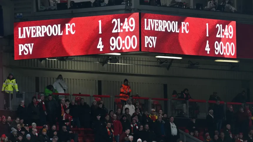 A Liverpool katasztrofális szezonkezdetét tovább rontotta a kedd esti 3-0-s vereség a PSV Eindhoven ellen a Bajnokok Ligájában. A magyar válogatott csapatkapitánya, Szoboszlai Dominik végigjátszotta a találkozót, de teljesítménye messze elmaradt a tőle megszokott színvonaltól. A Mersey-parti együttes idei mérlege minden versenysorozatot figyelembe véve mindössze három győzelem, két döntetlen és már négy vereség.