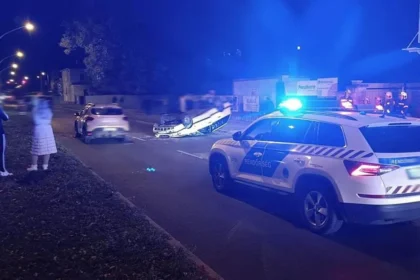 Nyíregyházi baleset 2025: négyes karambol autóval a tetején