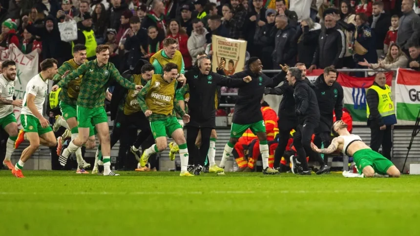 A magyar labdarúgó-válogatott drámai küzdelemben 2-1-es vereséget szenvedett Írország ellen a 2026-os világbajnokság európai pótselejtezőjének első fordulójában. A Puskás Arénában rendezett találkozón Marco Rossi csapata Szoboszlai Dominik révén szerzett vezetést a 23. percben, de az írek a második félidőben két góllal fordítottak. Az Országos Rendőr-főkapitányság tájékoztatása szerint a mérkőzésen a biztonsági intézkedések zavartalanul zajlottak, rendkívüli esemény nem történt.
